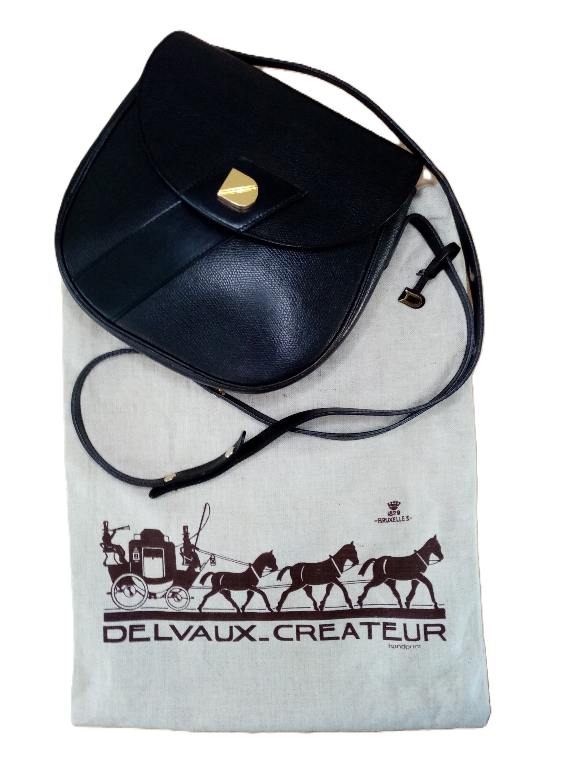 Mooie Delvaux vintage crossbody in zwart gekorreld leer met stofzak. Tijdloze Klasse!