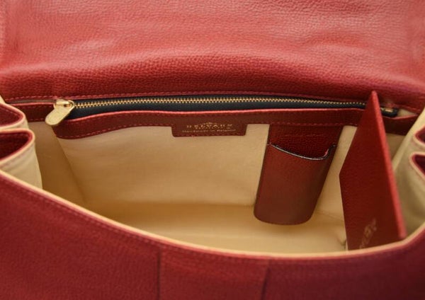 Een iconisch en zeer geliefd model uit het Belgische huis Delvaux: deze Brillant MM in diepe bourgognekleur straalt pure klasse en elegantie uit. Vervaardigd uit fijn Jumping-leder met subtiele korrelstructuur en de herkenbare, handgemaakte gesp als blikvanger. De binnenzijde is verzorgd en voorzien van het originele spiegeltje, een typisch Delvaux-detail dat luxe en verfijning benadrukt. Een stijlvol en tijdloos stuk van Belgisch vakmanschap, ideaal voor de verzamelaar of liefhebber.
