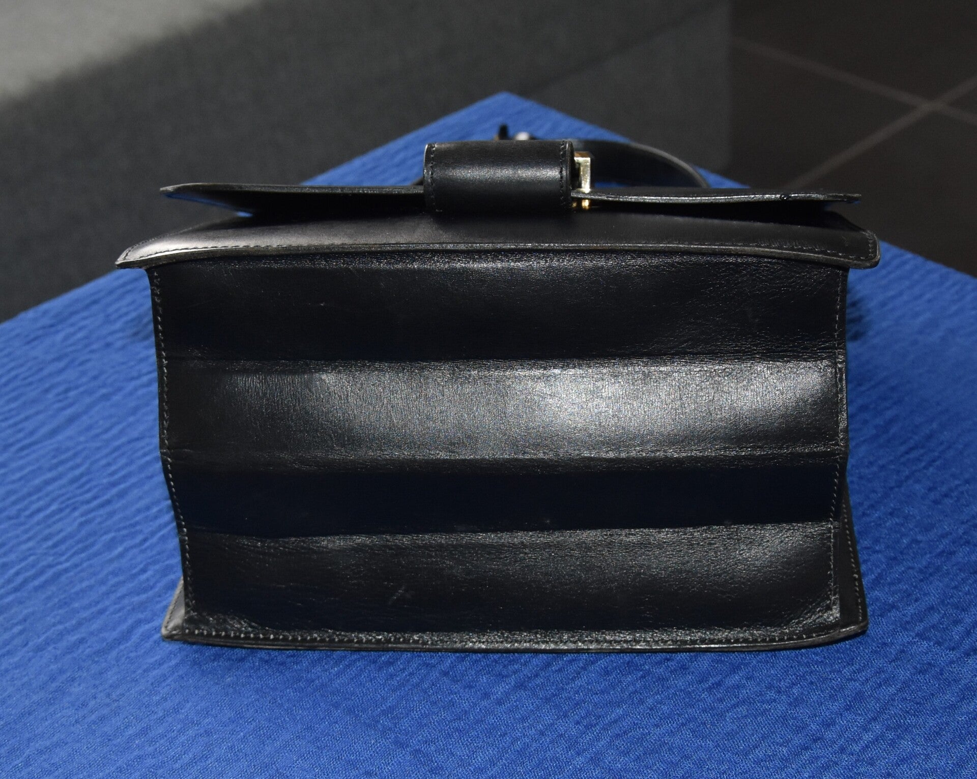 Deze prachtige Delvaux vintage handtas uit begin de jaren ’70 is een waar collectors item voor liefhebbers van Belgisch vakmanschap. Uitgevoerd in zwart leder met een elegante combinatie van geborsteld staal en goudkleurig hardware, straalt dit stuk pure klasse uit. Binnenin beschikt de tas over twee ruime compartimenten en een ritsvak, ideaal voor het veilig opbergen van al je essentials.