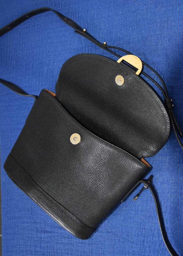 Een stijlvolle en minimalistische Delvaux crossbody in mooi, zwart gekorreld leer. Het sobere design wordt verfijnd afgewerkt met een subtiel goudkleurig detail op de voorkant wat dit model zijn tijdloze uitstraling geeft. Dankzij de verstelbare schouderriem kan de tas zowel crossbody als klassiek over de schouder gedragen worden. Compact en elegant maar toch praktisch genoeg voor je dagelijkse essentials.