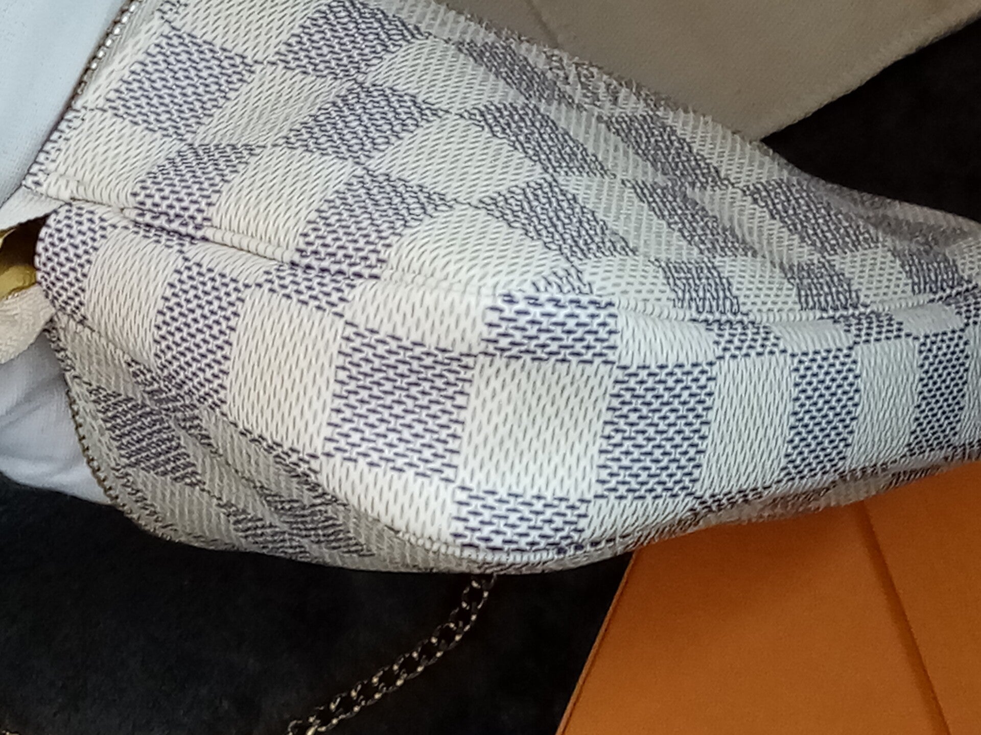 Een gegeerd item voor elke LV-liefhebber: de Mini Pochette Accessoires in Damier Azur, model N58010. Dit model in azur wordt niet meer geproduceerd wat de verzamelwaarde alleen maar verhoogt.