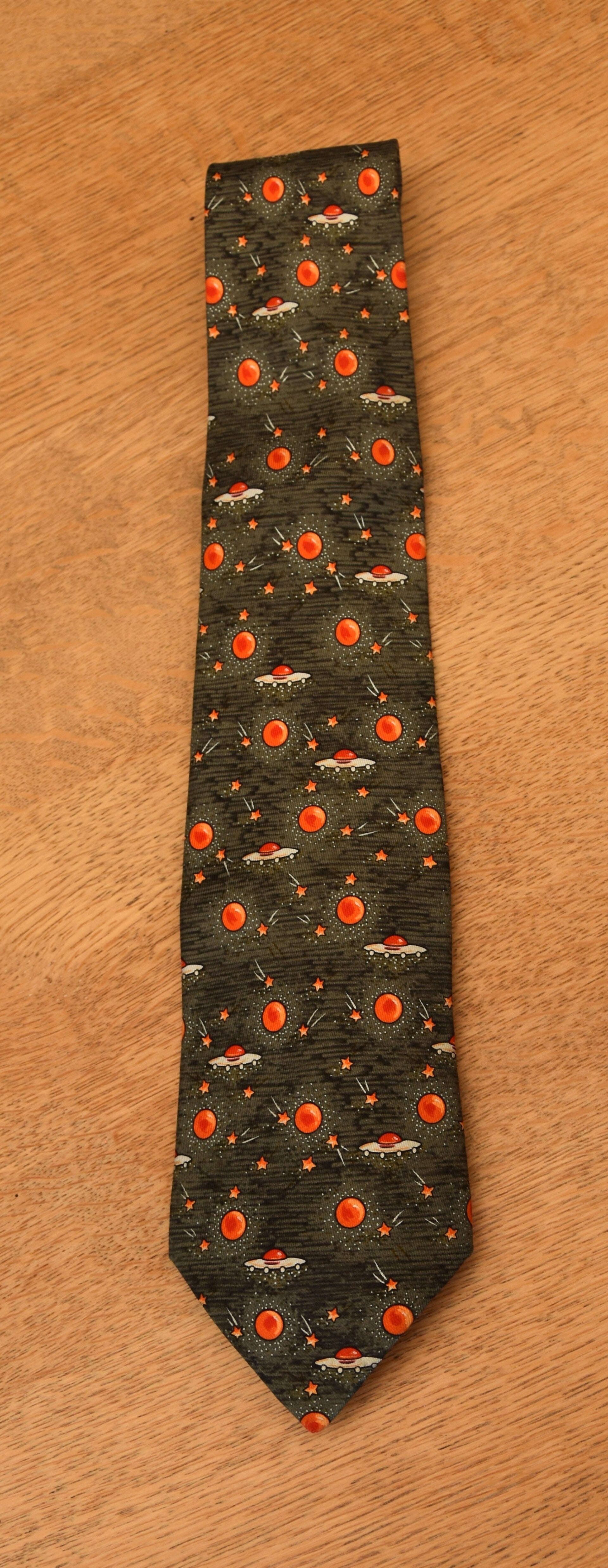 Deze bijzondere Hermès das model 7777FA is uitgevoerd in luxueuze zijde (100%) en heeft een speels en verfijnd UFO- en ruimte-motief. Een typisch voorbeeld van de creatieve en humorvolle prints waar Hermès om bekendstaat.