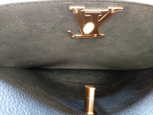 Een elegante en moderne handtas van het iconische modehuis Louis Vuitton. Deze Lockme / Lock & Walk (M24006) in zwart soepel leer straalt pure klasse uit en combineert een minimalistisch design met het herkenbare LV-slot als verfijnd detail. d.d. 2024